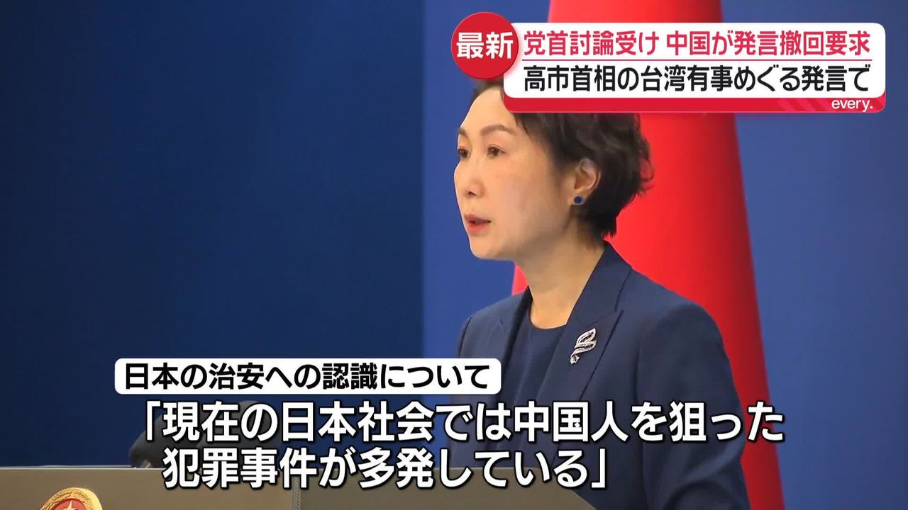 中国政府、改めて“台湾有事発言”撤回求める 党首討論うけ(2025年11月26日掲載)|日テレNEWS NNN