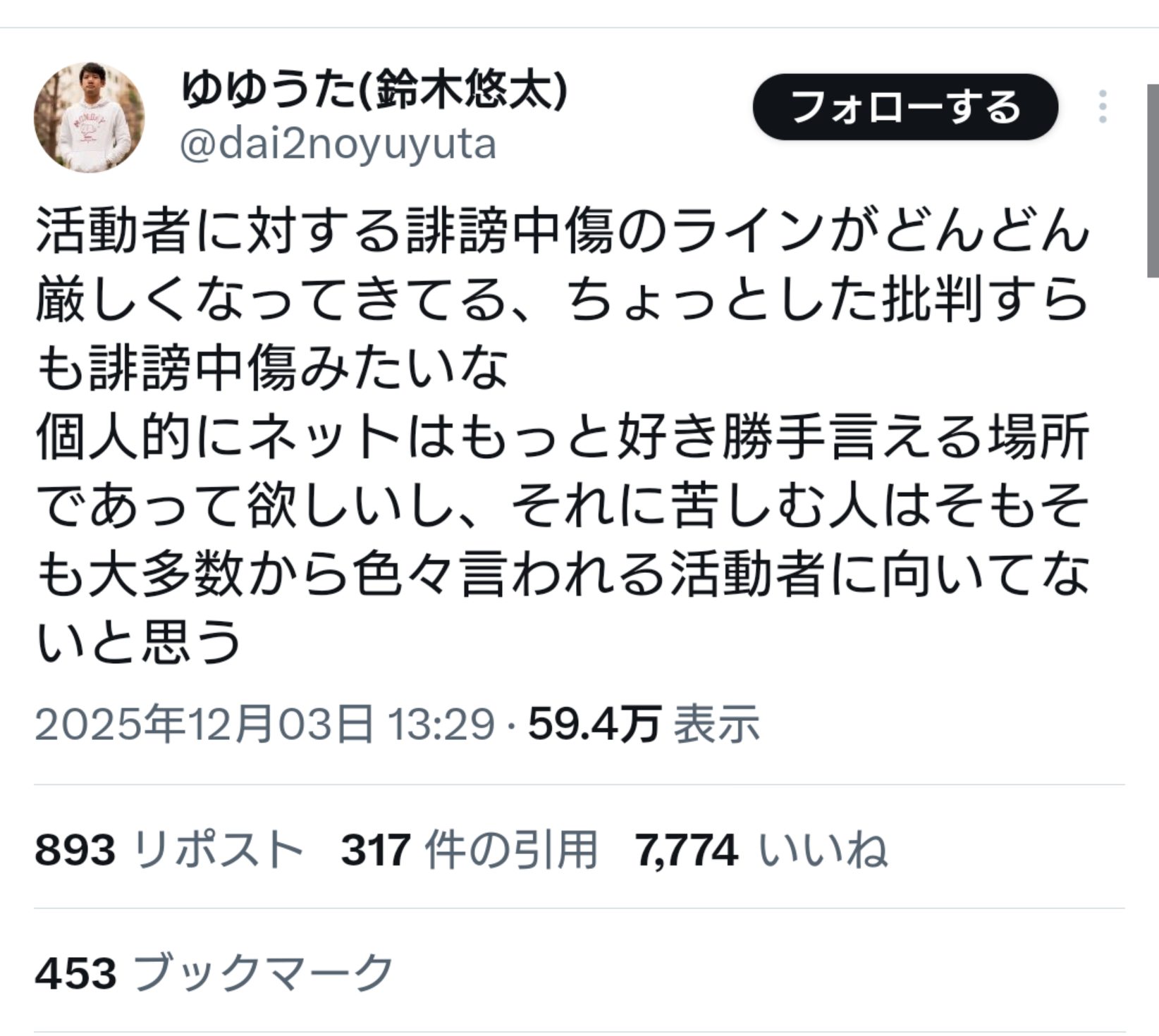 引用元: ・ゆゆうた「最近ちょっとした批判すら誹謗中傷になる、その程度で苦しむなら配信者に向いてない」