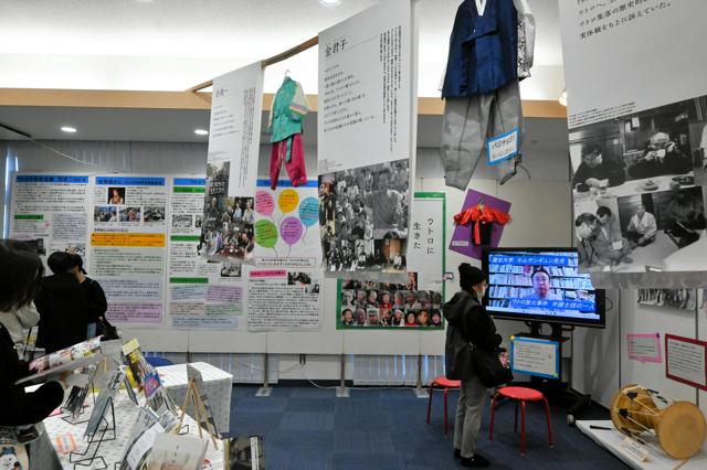 展示はこうした背景を解説。センター職員の田中沙希さんが、ウトロの住民や祈念館スタッフらにインタビューした映像なども紹介した。田中さんは「ウトロ地区を知ってもらうだけではなく、身近に困っている人や取り残されている人がいないか、自分にできることを考えてほしい」と話した。(渡辺杏果)