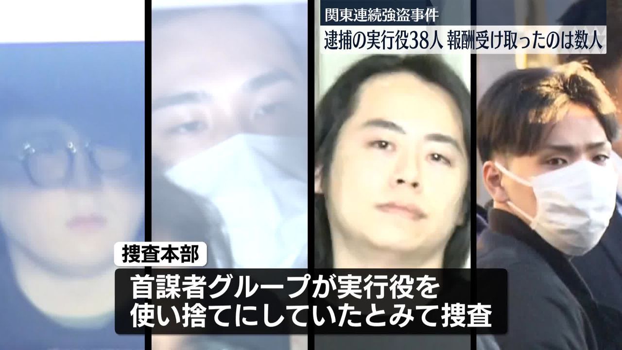 逮捕の実行役38人のうち、報酬受け取ったのは数人 関東連続強盗事件去年、関東で18件相次いだ一連の強盗事件を巡り、これまでに逮捕された実行役38人のほとんどが、首謀者から報酬を受け取っていなかったことが分かりました。