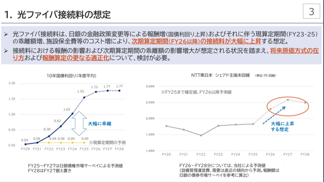 次期算定期間(FY26以降)の接続料は大幅な上昇が見込まれる。
