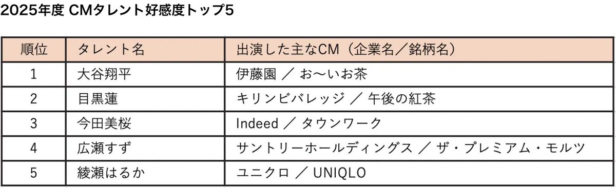 2025年度 CMタレント好感度トップ5