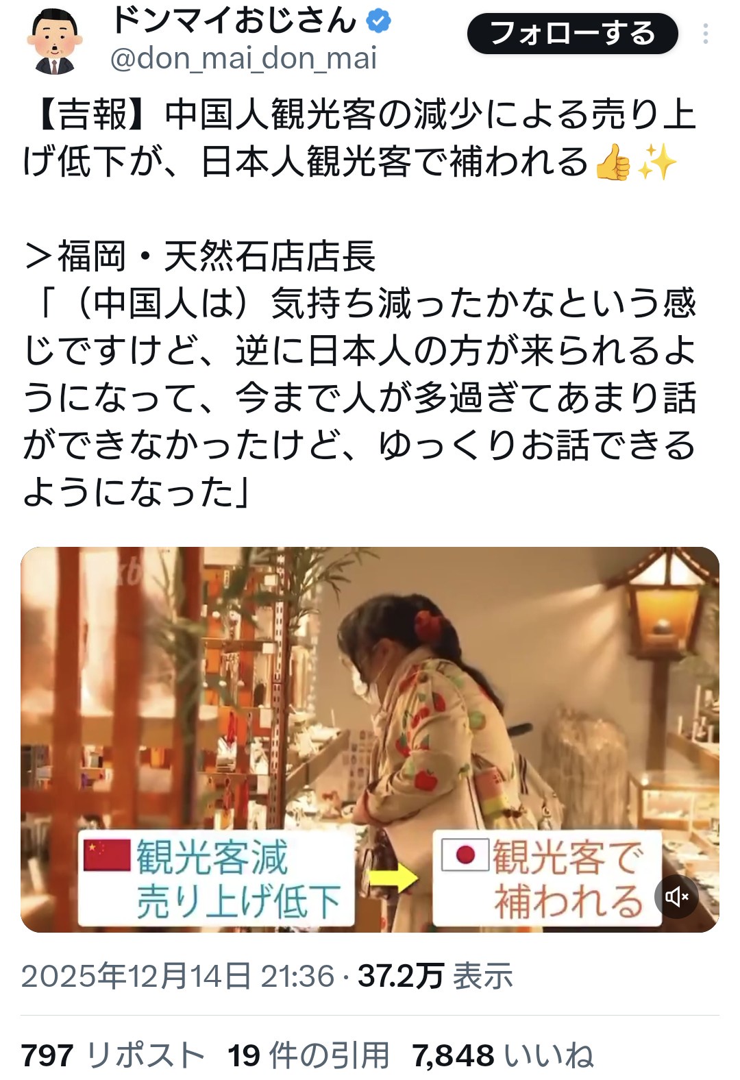The post 中国人観光客の減少による売り上げ低下が、日本人観光客で補われる first appeared on Tweeter BreakingNews-ツイッ速!.