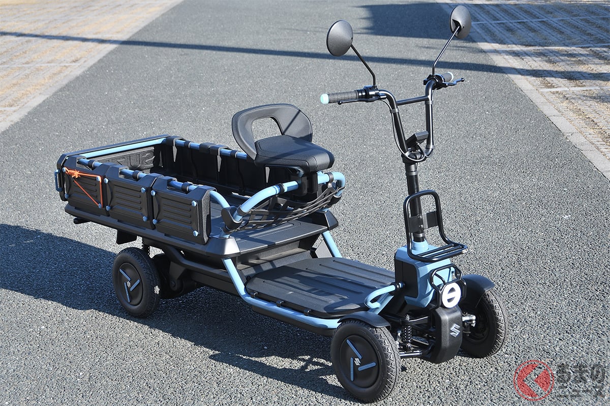 スズカーゴは、後部に広々とした荷台を備え、まるで「ちいさな軽トラック」とも呼べる、頼もしい積載性も魅力のひとつ。この荷台には最大30kgまでの荷物を積載できるため、日々の買い物から小規模な配達業務まで、多彩なシーンでの活躍が期待されます。