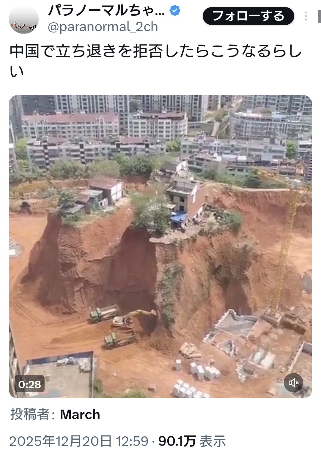 引用元: ・中国で立ち退きを拒否したらこうなるらしい [662593167]