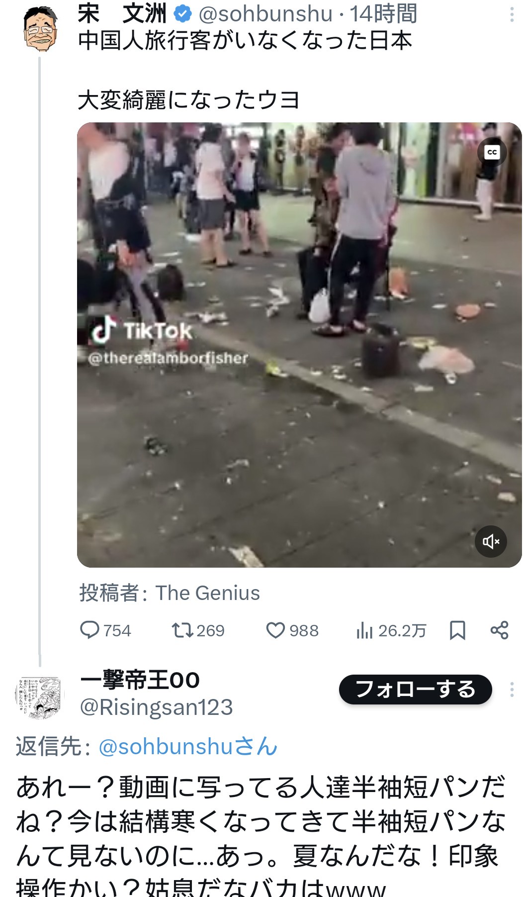 The post 著名中国人「中国人旅行客がいなくなっても街は汚いままだぞ!」 ←捏造と即バレ first appeared on Tweeter BreakingNews-ツイッ速!.