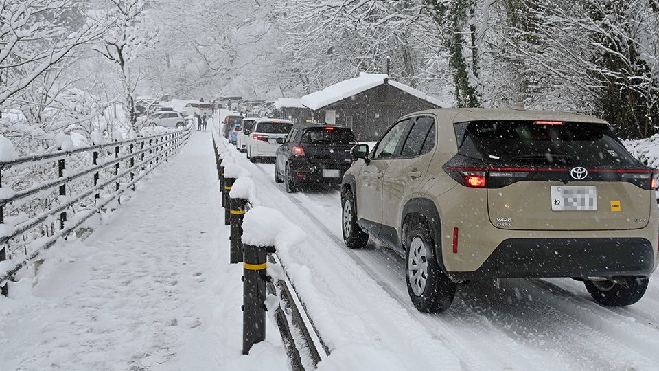 インバウンド(訪日客)でにぎわう岐阜県大野郡白川村で、外国人観光客によるレンタカーの事故が問題になっている。豪雪地帯の飛騨地域では、冬になると雪道に慣れていない観光客のスリップ事故が多発。冬用タイヤを装着していない車も見られ、住民生活に影響が出るような長時間の渋滞も起きている。寒さが本格化する年末年始を控え、関係機関が警戒を強めている。