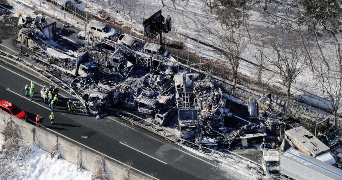 事故は26日午後7時半ごろ、水上IC付近の下り線で発生。約300メートルの範囲でトラックや乗用車など計67台が関係し、うち20台が炎上した。2人が死亡したほか、5人が重傷、21人が軽傷を負った。