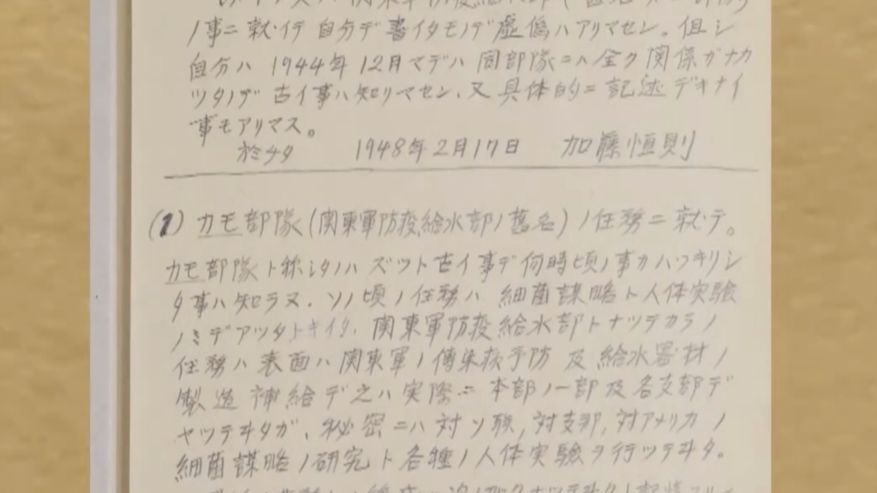 【CRI】 旧日本軍の罪状に新たな確証、731部隊の支隊長の自筆供述書が初公開