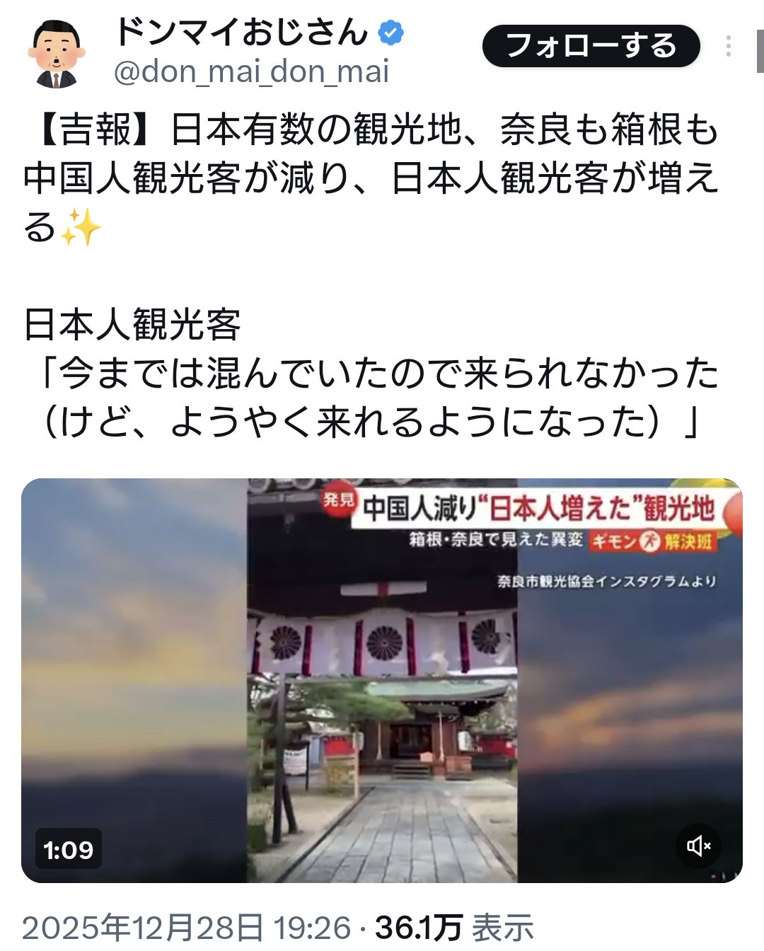 The post 中国人が減り“日本人が増えた”観光地 first appeared on Tweeter BreakingNews-ツイッ速!.
