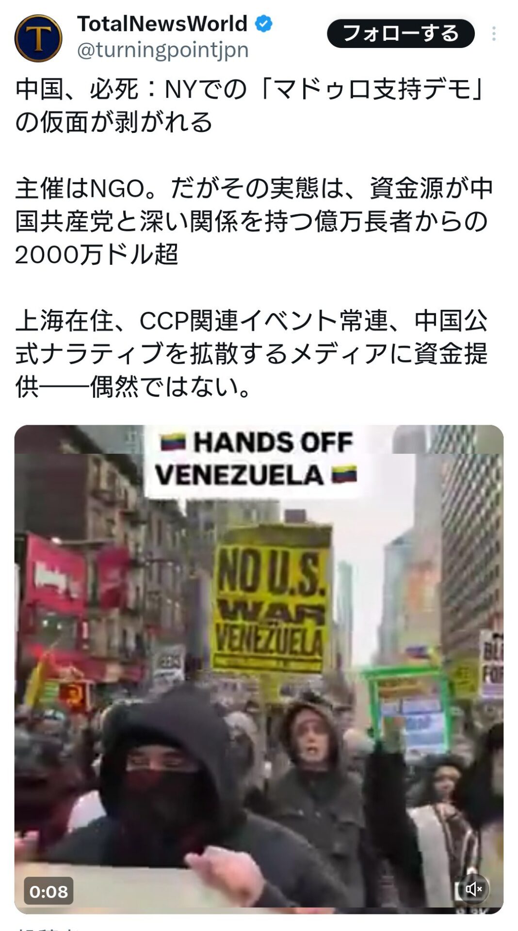 The post NYにて「マドゥロ支持デモ」開催。もちろん中国共産党に支援されています first appeared on Tweeter BreakingNews-ツイッ速!.