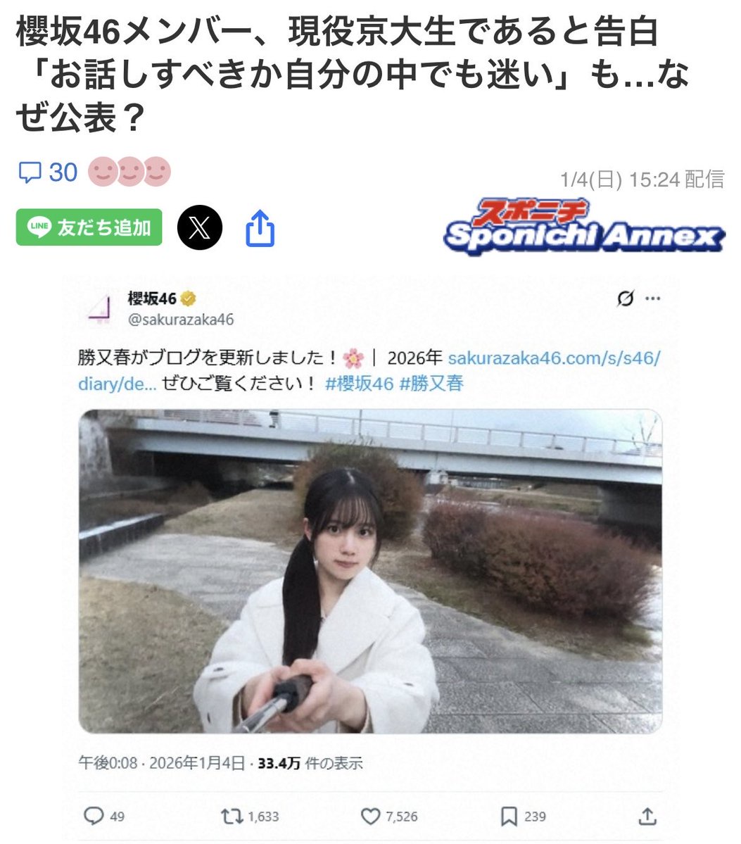 現役京大生の櫻坂46・勝又春(21歳)
