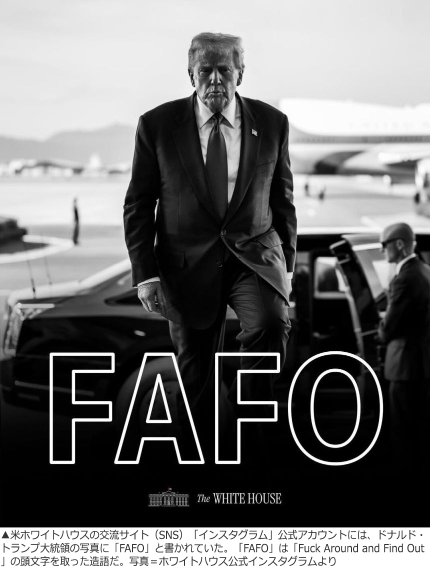 主要国の首脳や政府は、全世界の人々がリアルタイムで見るSNSのメッセージを掲示する際、対外政策に関してはできる限り表現を練り、遠回しな表現を使うのが慣例だ。しかし、トランプ政権はこのような形式すら気にしていない様子だ。スラングやFワード混じりのメッセージを載せて作戦成功に対する自信をアピールし、米国の軍事力を今後いっそう強力に展開することを表明したものだとの見方もある。外信各社は今後、相手が一線を越えたと米国が判断した場合、直ちに圧倒的な手段で対応に出るという「力の外交」路線が「FAFO」という4文字に込められていると分析している。