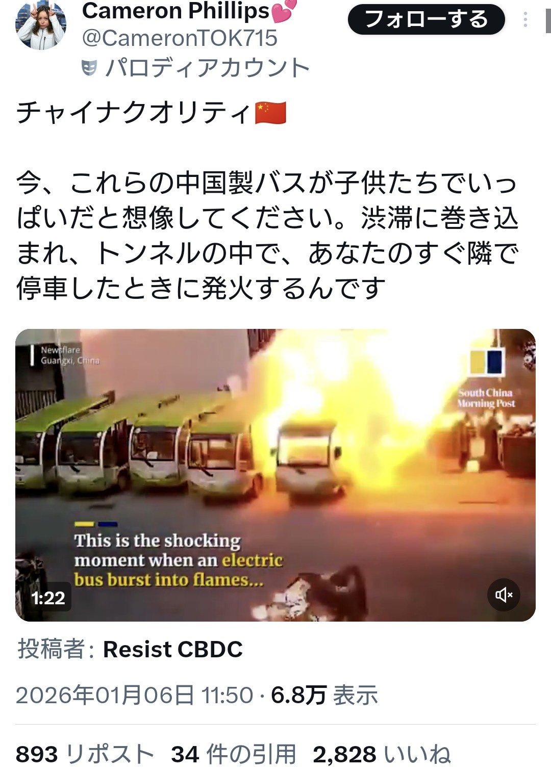 引用元: ・中華EVバスが爆発炎上💥🔥🚌🔥 周りのバスも巻き込む [662593167]