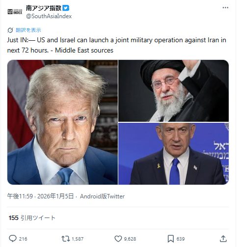 The post 【緊急】アメリカとイスラエル、72時間以内にイランに軍事作戦を行うとの噂 first appeared on Tweeter BreakingNews-ツイッ速!.