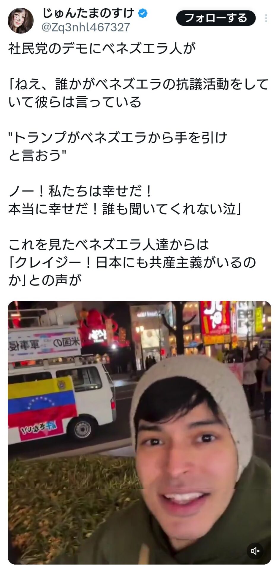 引用元: ・社民党の「トランプはベネズエラから手を引け」デモにベネズエラ人が抗議 [662593167]