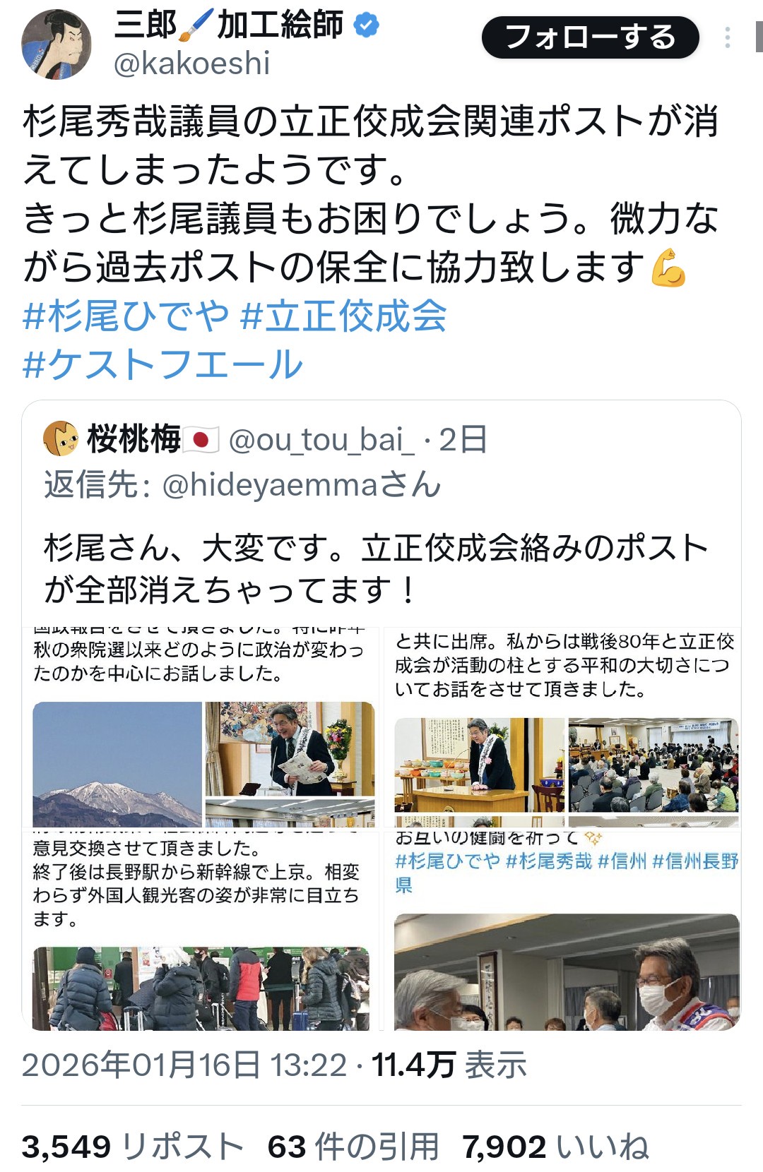 The post 立憲・杉尾秀哉議員、立正佼成会関連ポストを消す first appeared on Tweeter BreakingNews-ツイッ速!.