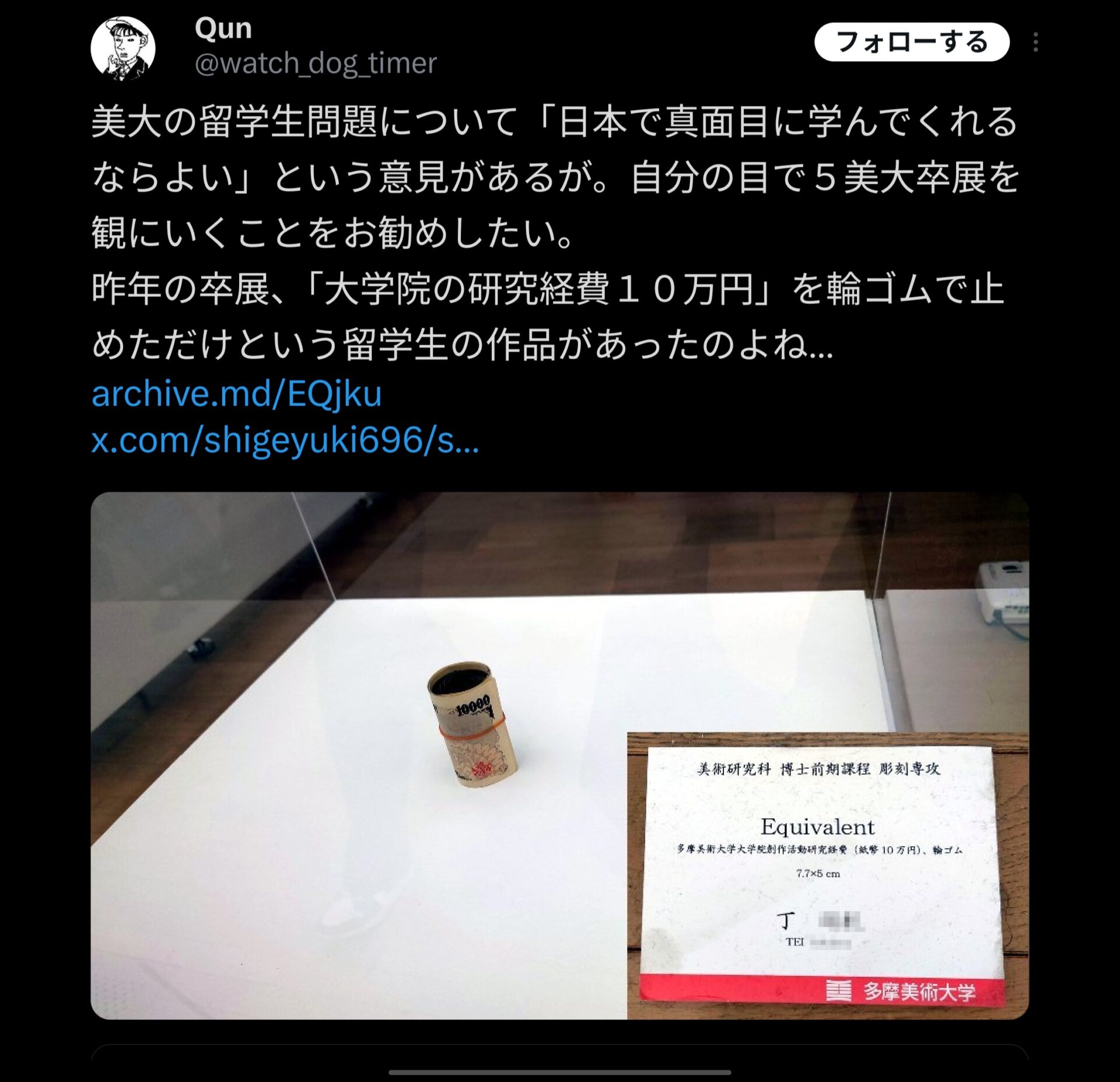 The post 【悲報】美大の中国人留学生、とんでもない作品を作ってしまいネットで議論になる first appeared on Tweeter BreakingNews-ツイッ速!.
