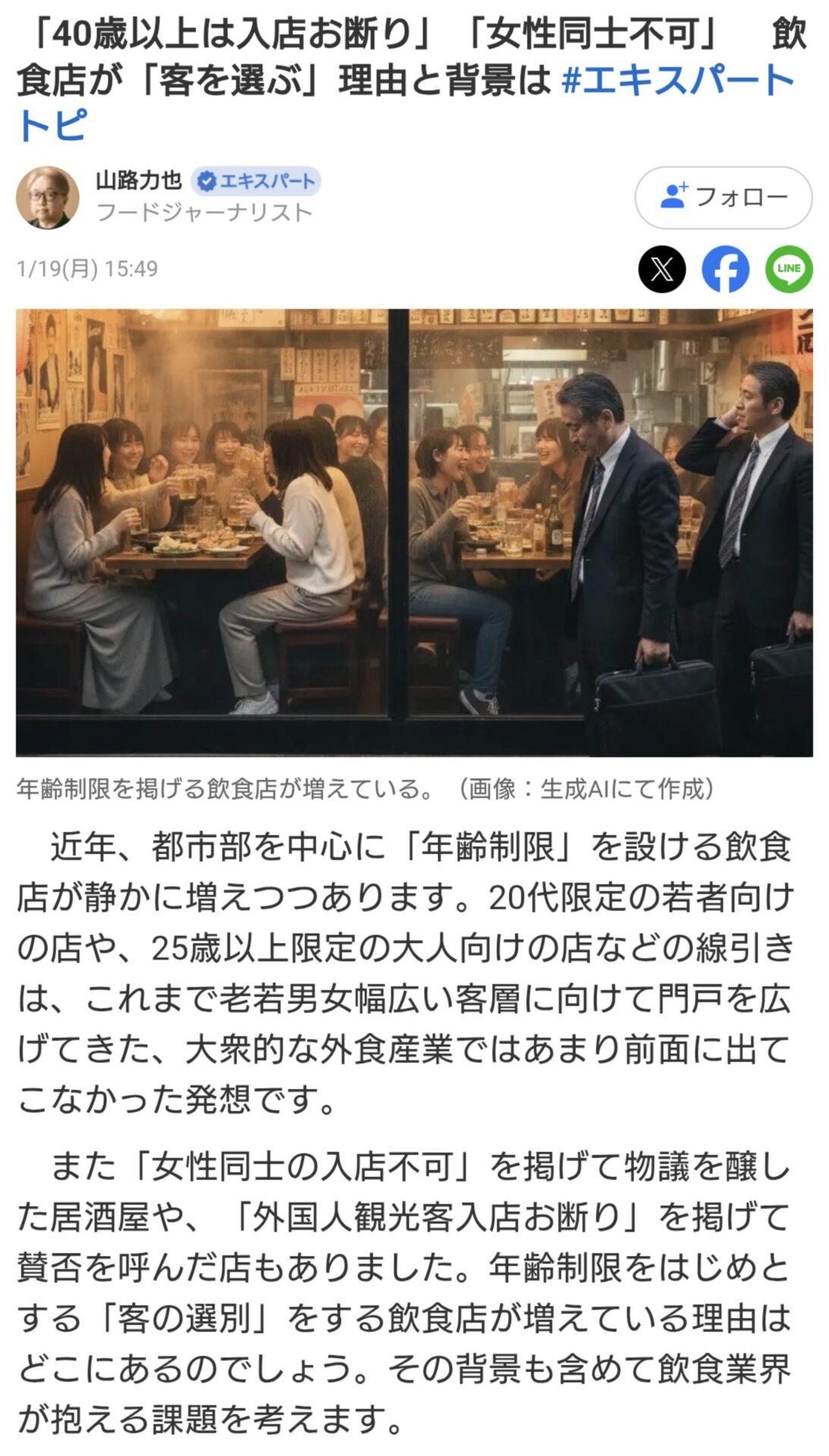 The post 飲食店「40歳以上は禁止、女同士の来店は禁止」 first appeared on Tweeter BreakingNews-ツイッ速!.