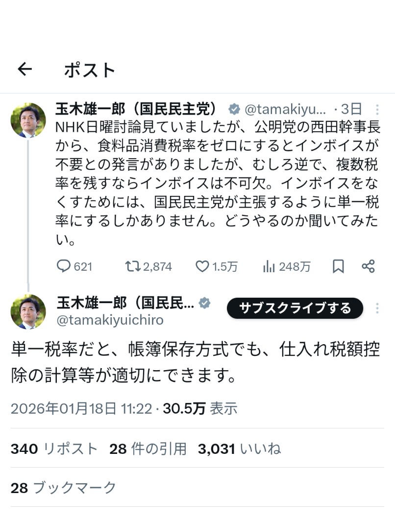 The post 玉木雄一郎って食料品減税の話で仕入税額控除の話するあたり有能だよな first appeared on Tweeter BreakingNews-ツイッ速!.