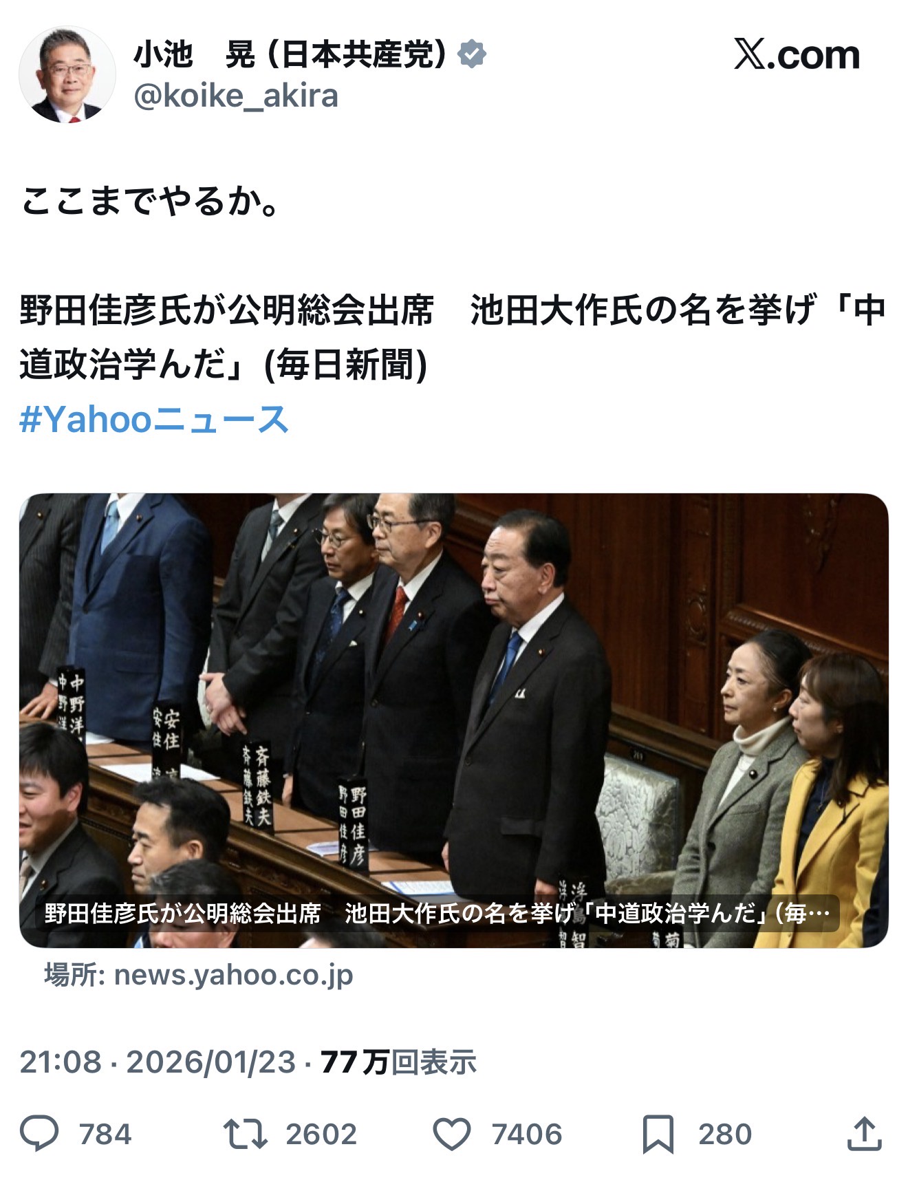 The post 中革連・野田佳彦氏が池田大作を礼讃 これには日本共産党の小池晃氏も思わずドン引き first appeared on Tweeter BreakingNews-ツイッ速!.