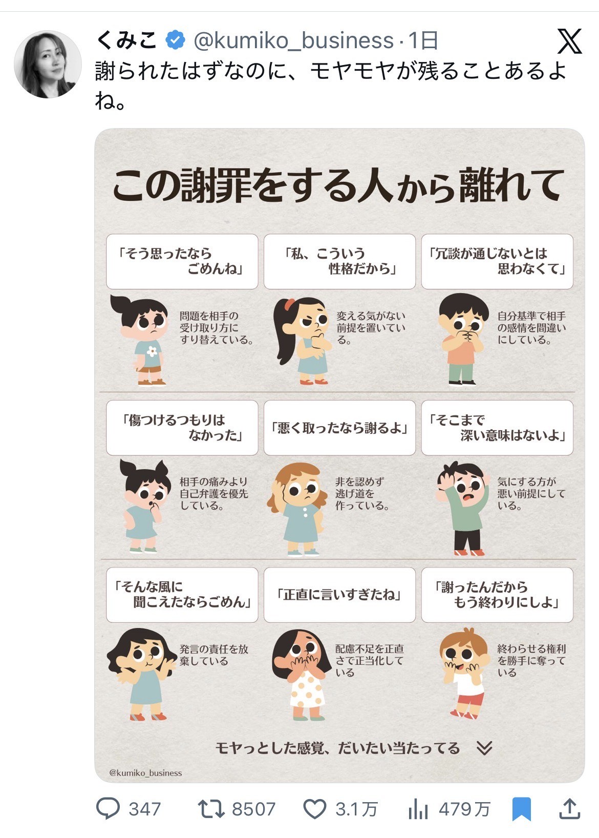 X女性「この謝り方をする人からは離れたほうがいいよ!(画像ペタッ♪)」 ←479万PV・3.1万いいね