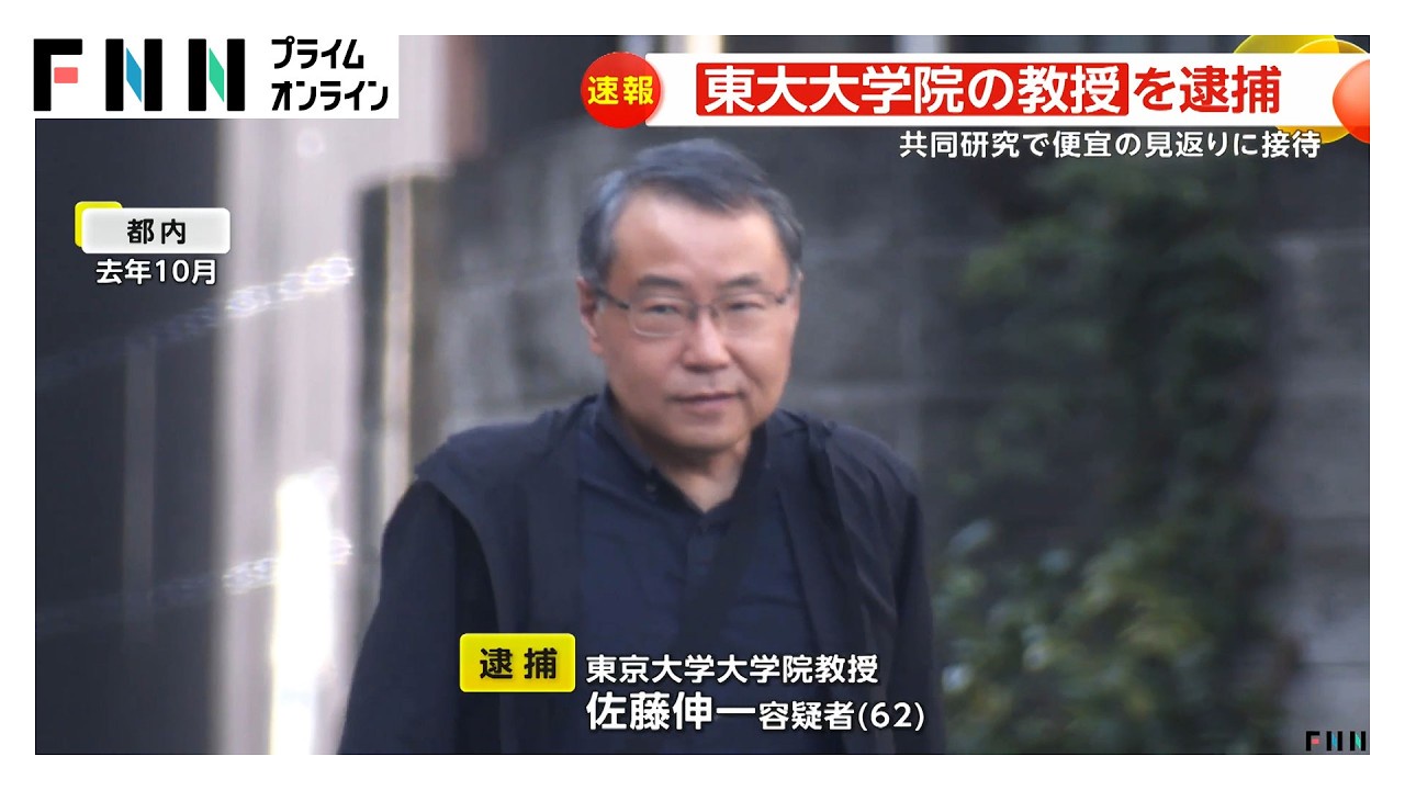 警視庁は24日、東京大学大学院医学系研究科教授の佐藤伸一容疑者(62)=東京都文京区=を収賄容疑で逮捕し、発表した。
