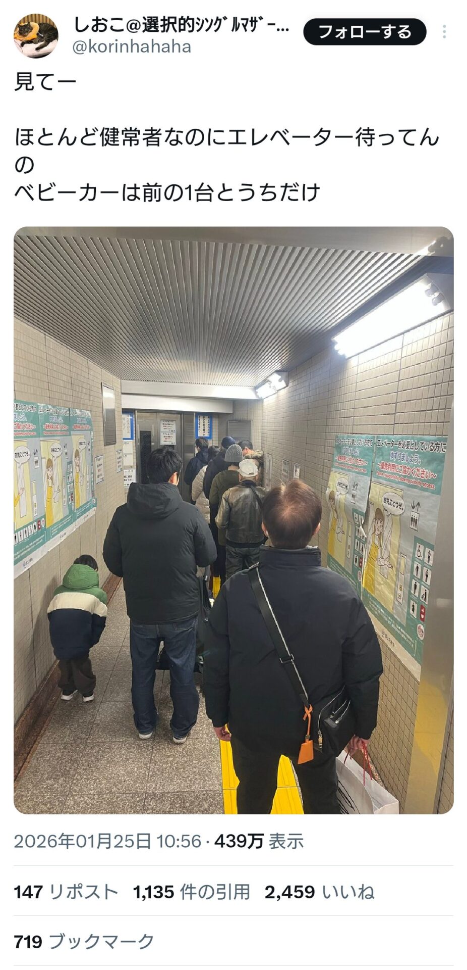 The post シングルマザー「健常者がエレベーター待ってて渋滞してる!パシャッ」←何様だと批判殺到 first appeared on Tweeter BreakingNews-ツイッ速!.