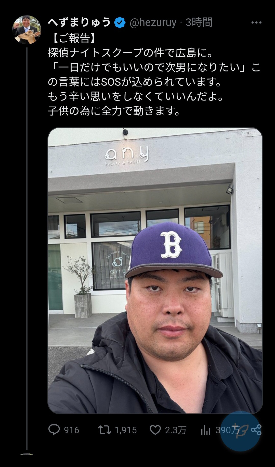 The post 【悲報】へず◯りゅう、探偵ナイトスクープで炎上した家族の長男を救うために広島に到着 first appeared on Tweeter BreakingNews-ツイッ速!.