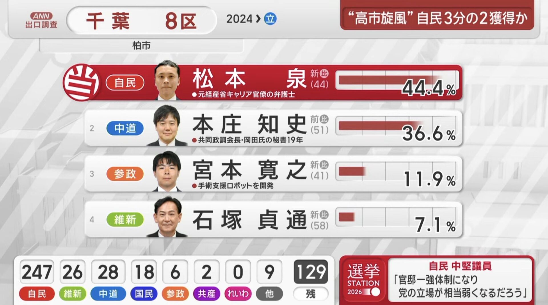 千葉8区 中革連の政調会長、本庄知史氏、ボロ負け😢