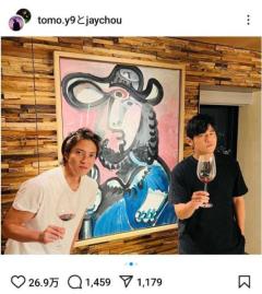 俳優で歌手の山下智久(40)が4月18日に自身のInstagramを更新した。 この日の投稿では、『ジェイ・チョウさんと遊んできました いつもありがとう。幸運な日でした』と英語で綴り、絵画を背景にアジアで活躍する台湾出身の俳優で歌手のジェイ・チョウ(46)とワイングラスを持った2ショットを公開。白いTシャツを着た山下の腕の筋肉にも注目が集まった。 この投稿にファンからは「山Pのお顔ニコニコで可愛い でもワインを持つ腕はガッチリしててかっこいい」「山Pは、世界中に沢山の素敵な友人がいて、とても幸せだね」「ジェイチョウさんと一緒なんて素敵すぎる」「山Pいつも素敵な景色ありがとうございます。2人の楽しそうな姿とワインで乾杯と二の腕が好き 2人ともカッコいいです」など、たくさんのコメントが寄せられた。