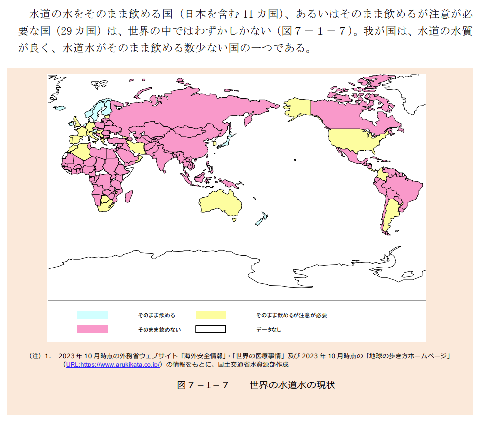国土交通省によれば、「国土全体において水道水を安全に飲める国」は世界に9カ国しかありません。