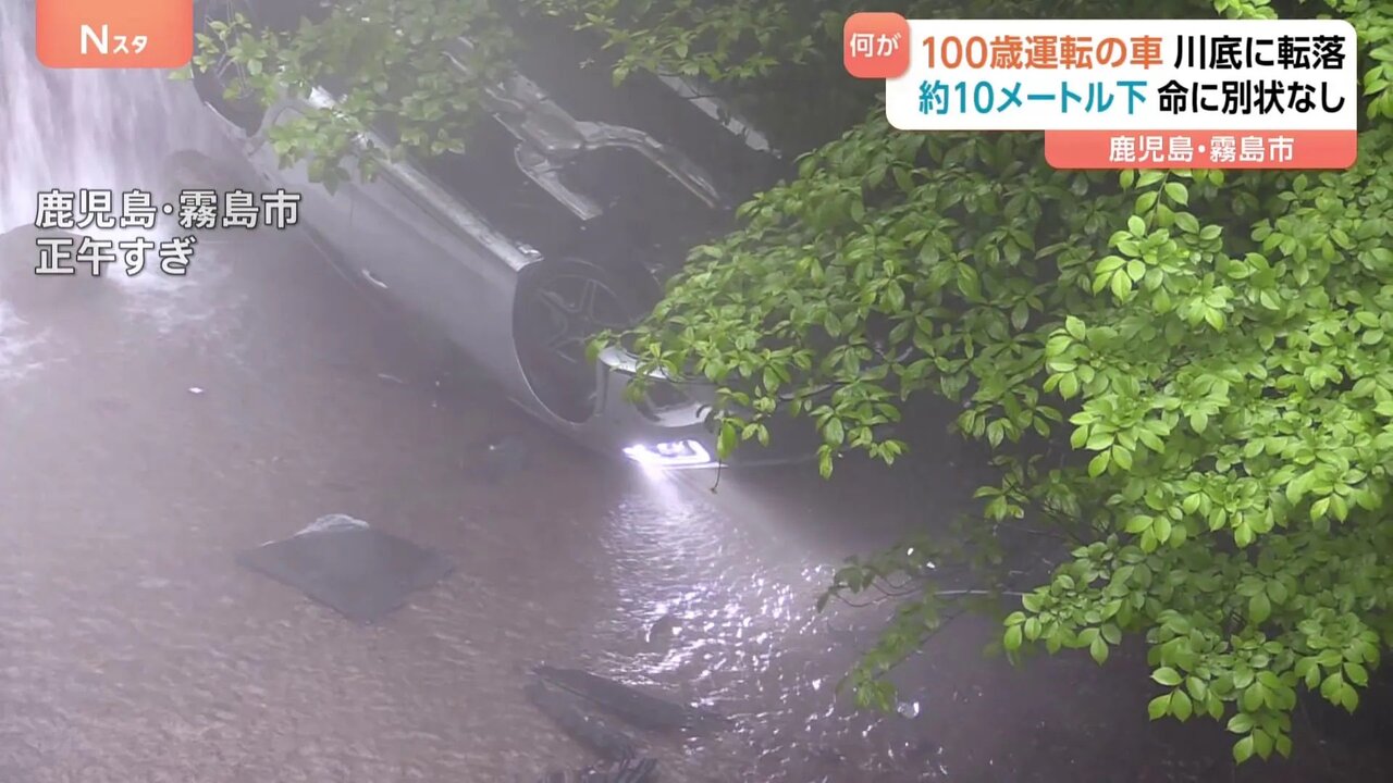 100歳男性が運転する車が10メートル下の川に転落… 現場はカーブが連続し濃霧状態 なお命に別状なし 鹿児島・霧島市(動画あり)