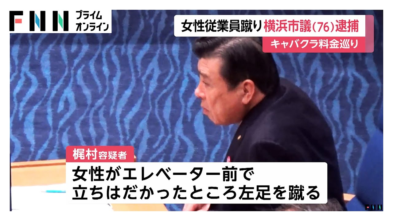 キャバクラ従業員の中国人女性(45)を蹴り負傷させた疑い 自民党所属の横浜市議 梶村充容疑者(76)を逮捕 神奈川(動画あり)