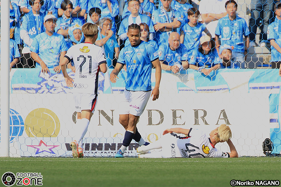一旦は自陣方向に走り出したが踵を返し、横浜FCのゴール前へ。