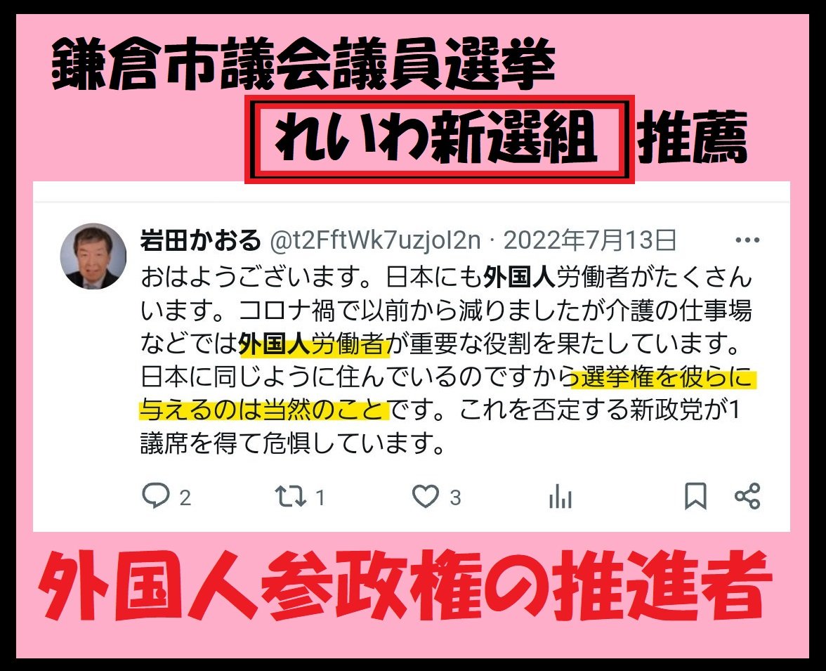 落選したれいわ新選組の候補者 「鎌倉市民の民意の低さを痛感します」