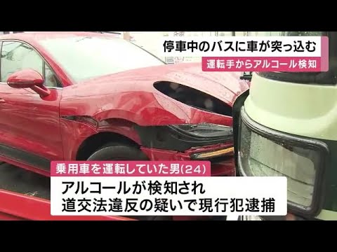 京都市上京区の「千本通」で6日朝、酒気帯び運転で停車中の市営バスに衝突し、乗客の女性にケガをさせたとして、高級外車「ポルシェ」を運転していた24歳の男が現行犯逮捕されました。警察の調べに対し、「お酒は飲んだが、(アルコールは)抜けていると思った」と容疑を一部否認しています。