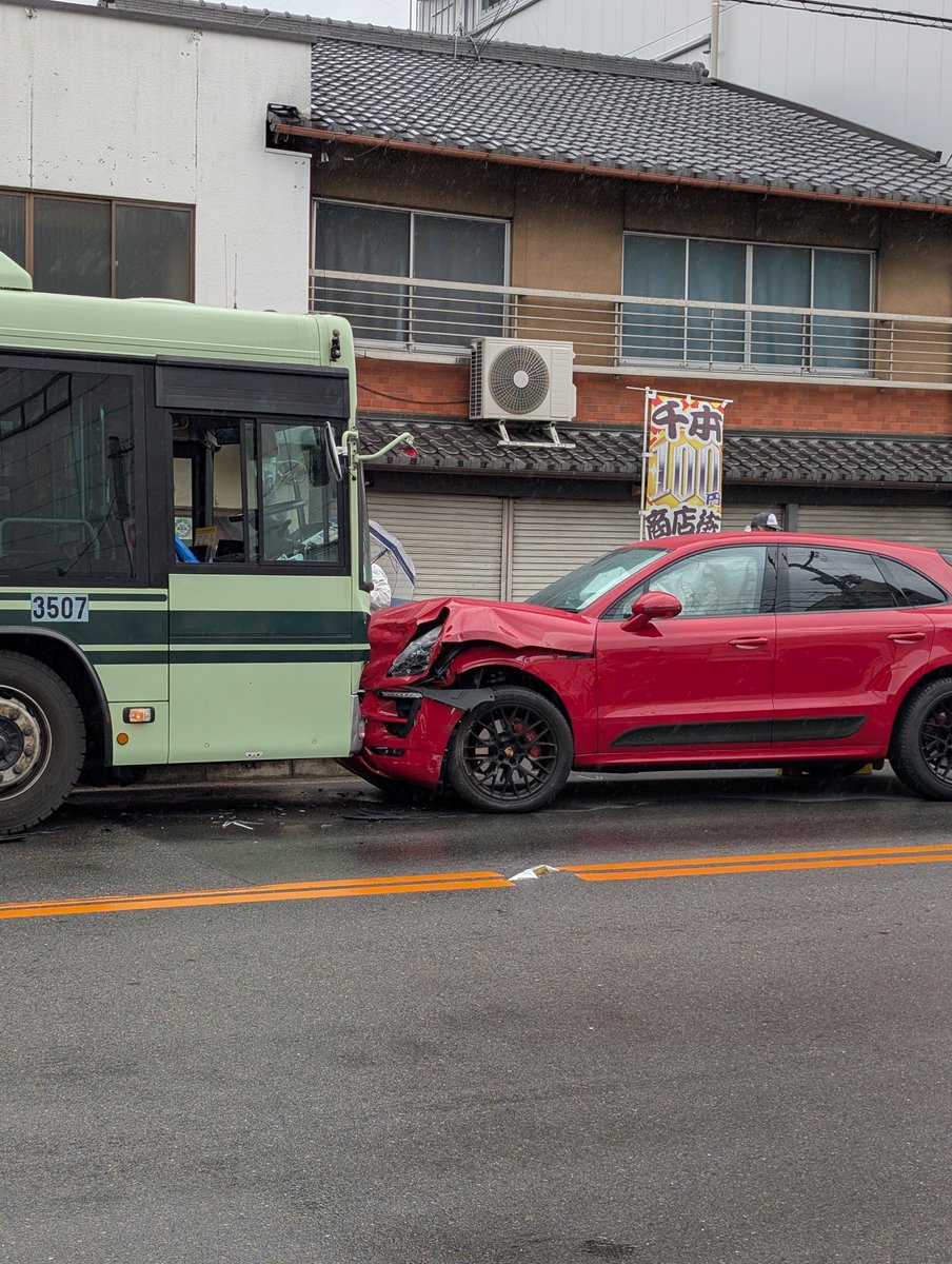 赤いポルシェが市営バスと正面衝突…バス乗客の女性が負傷 ポルシェを運転の24歳男を逮捕 酒気帯び運転などの容疑 京都(動画あり)
