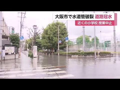 警察によりますと、10日午前7時すぎ大阪・城東区の東中浜小学校の付近で、「道路に水があふれている」と近くを通りかかった人から通報がありました。