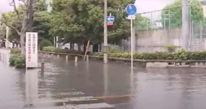 NHKが撮影した映像からは、地中から水が大量にあふれ出していて、小学校周辺の道路が冠水している様子が確認できます。