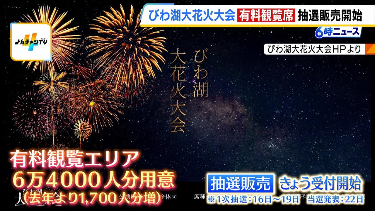 びわ湖の花火大会。有料観覧席の抽選販売が始まりました。滋賀県大津市で行われる「びわ湖大花火大会」。今年も8月8日に開催され、約1万発の花火が打ち上げられる予定です。
