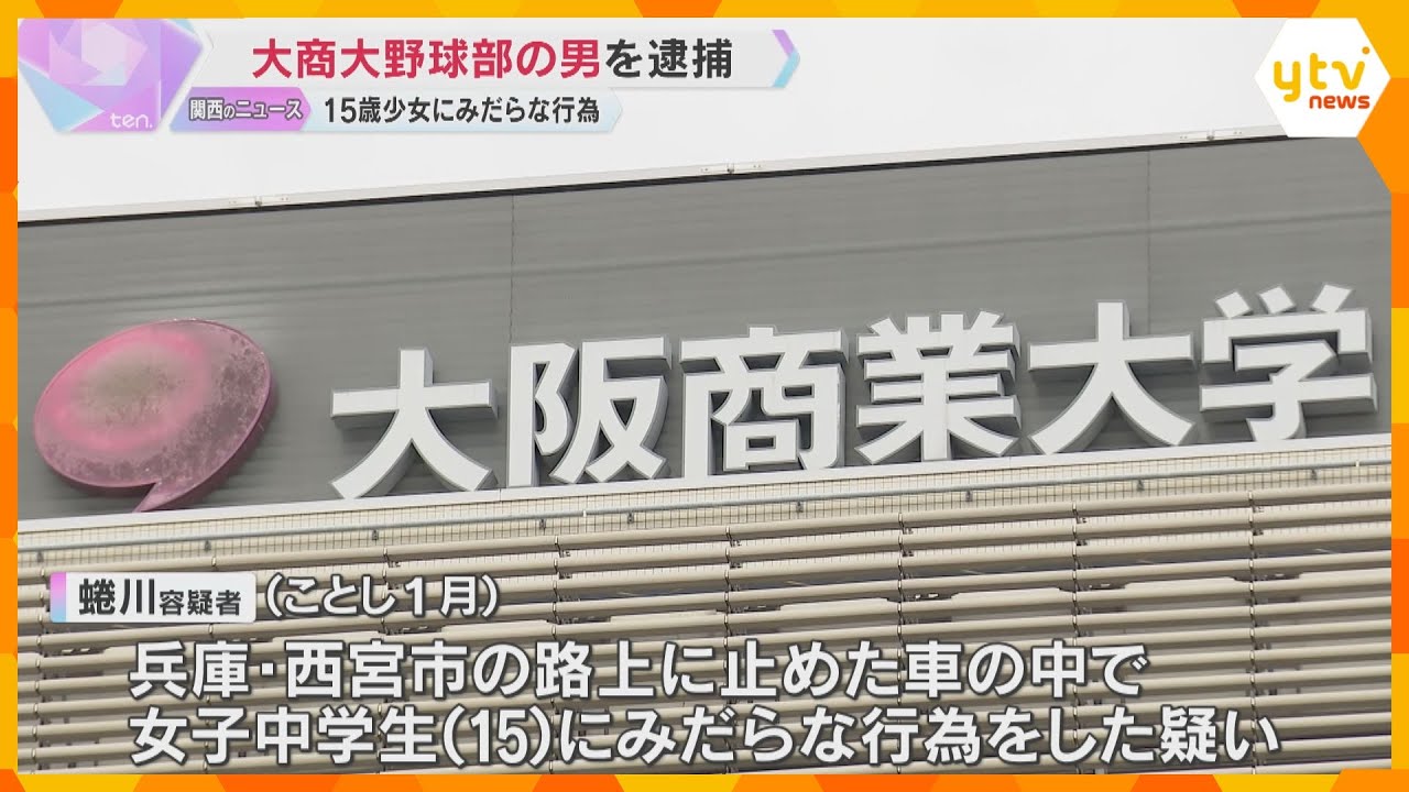 路上に止めた車内で15歳の女子中学生にみだらな行為をしたとして、大阪商業大学野球部の男が逮捕されました。
