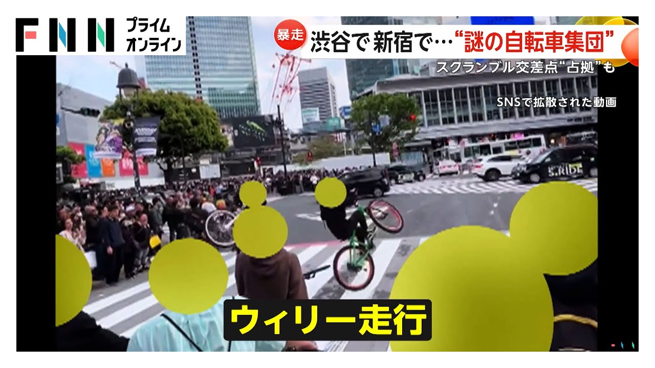 【SNS拡散】『謎の自転車集団』渋谷スクランブル交差点内で「ウィリー走行」新宿でも暴走行…危険な運転繰り返す(動画あり)