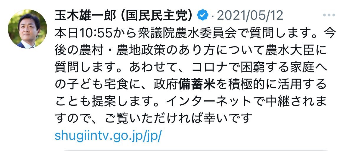 国民・玉木代表、備蓄米のことを「動物の餌」と発言 → 2021年には「子ども宅食に備蓄米を活用すべき!」と発言してた・・・(動画あり)