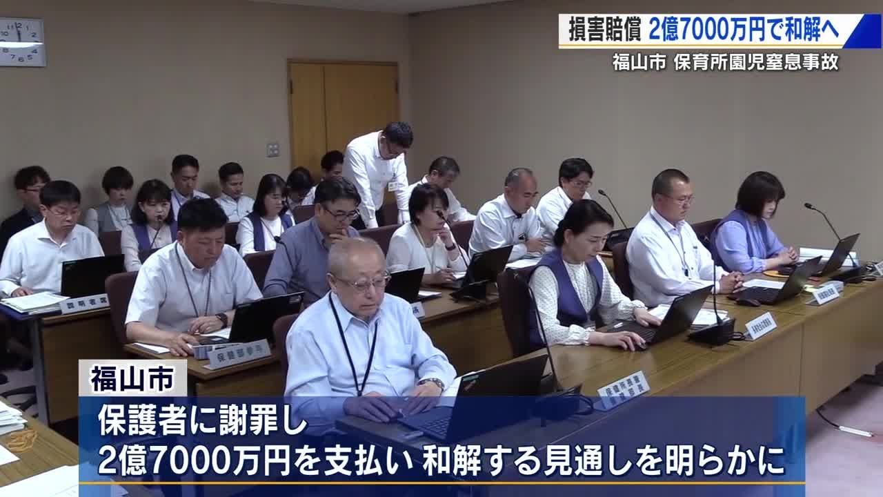 福山市は、29日の市議会常任委員会で、保護者側に謝罪するとともに、損害賠償金として2億7000万円を支払い和解する見通し (略)