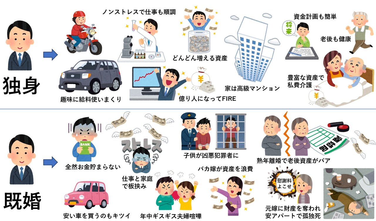 独身のやつはお金貯まらずますます結婚できなくなるのでは?