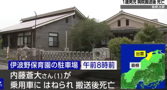 保育園の駐車場で1歳の園児が車にはねられ死亡  運転手の38歳介護士を逮捕  介護士は自分の子どもを送り届けたところだった 島根(動画あり)