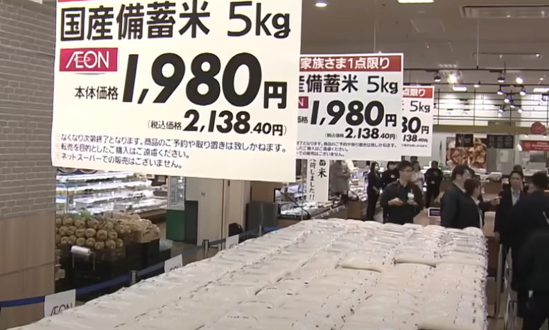 【コメ】イオンで山のように積まれた備蓄米、大勢が店に行列作るも売れ残る コメ価格への影響は?