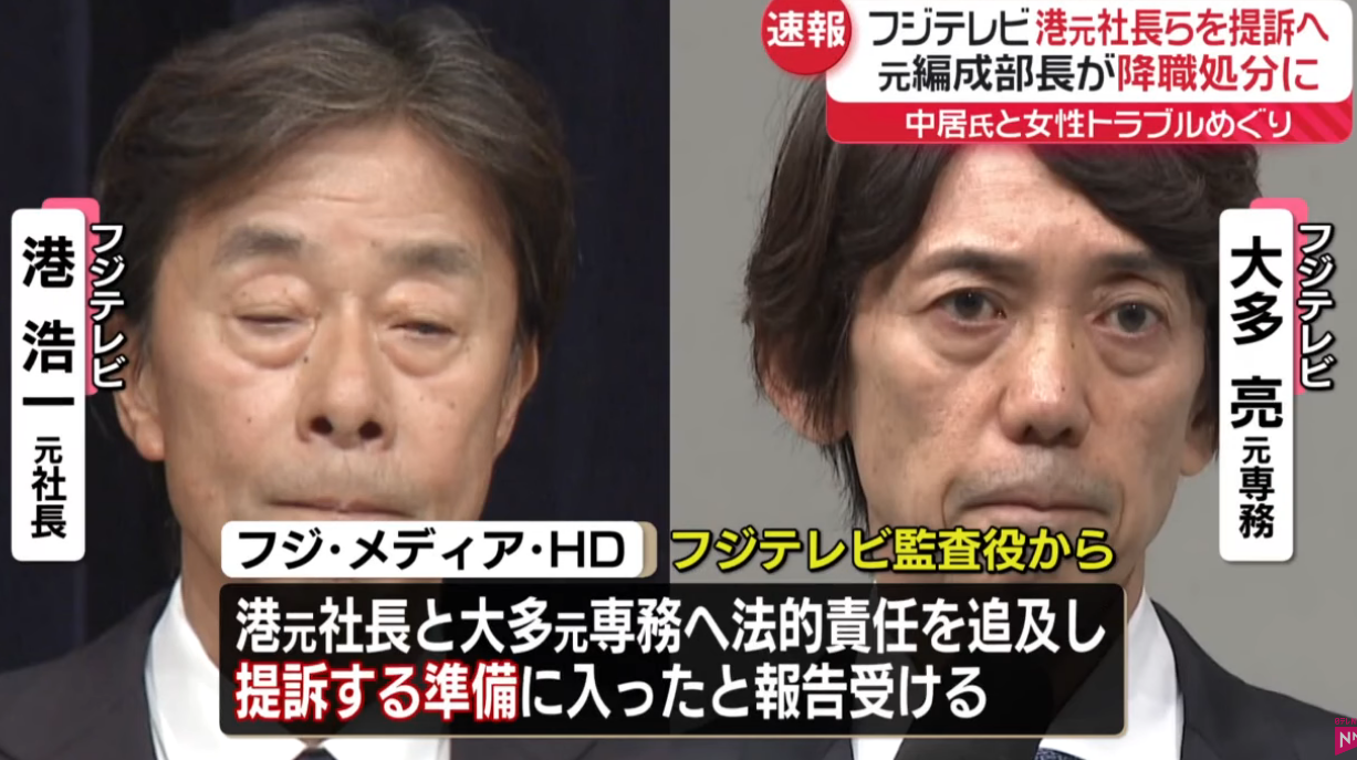 フジテレビ、港前社長、大多元専務を提訴へ 中居正広氏問題で「法的責任を追及する」(動画あり)