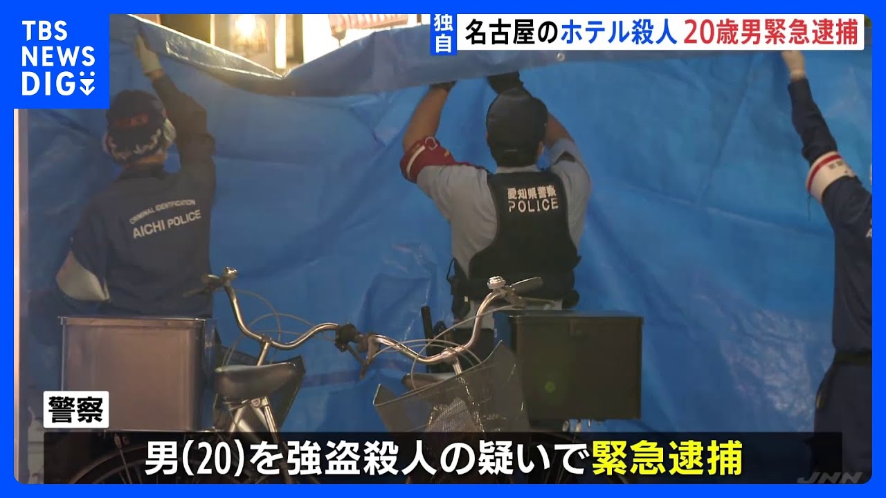 おととい、名古屋市中区のホテルで男性が殺害されているのが見つかった事件で、警察は、20歳の男を強盗殺人の疑いで緊急逮捕しました。